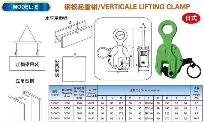 Kẹp tôn đứng Kawasaki có các loại tải trọng: 1 tấn, 2 tấn, 3 tấn, 5 tấn.