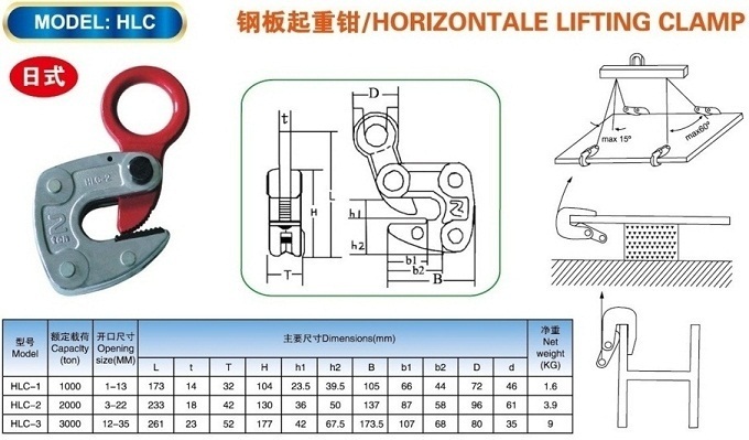 Kẹp tôn ngang Kawasaki model HLC có các loại tải trọng : 1 tấn, 2 tấn, 3 tấn.
