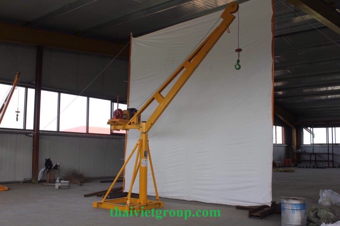 Khung cẩu xoay 360 độ kết hợp lắp tời điện xây dựng để nâng hạ, vận chuyển vật liệu xây dựng từ dưới đất lên các tầng cao như : gạch, cát, xi măng, đá, sỏi,...