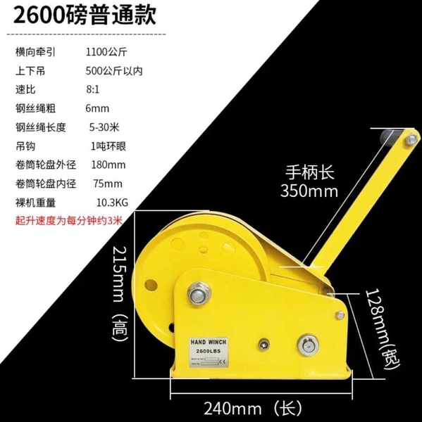 Máy tời quay tay tự hãm 2600LBS-1180kg